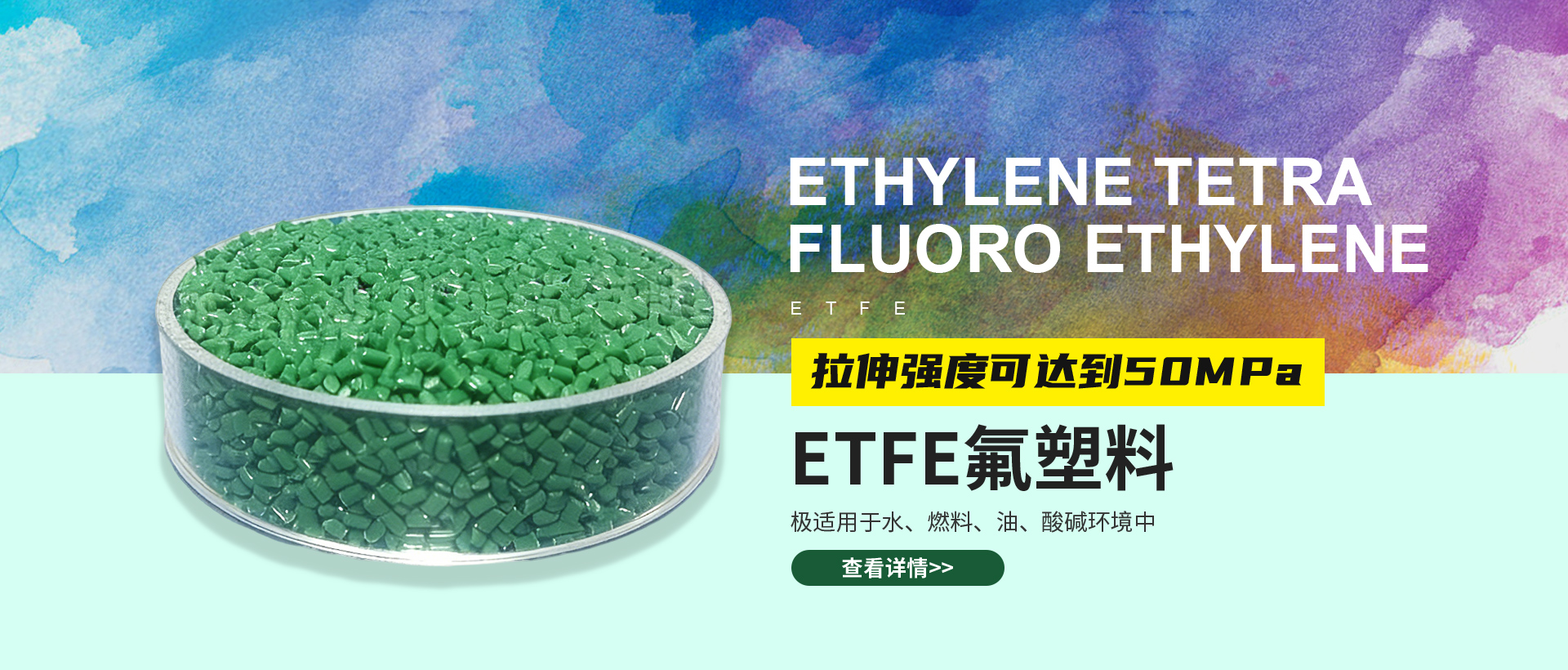 产品推荐:FEP彩色颗粒,FEP透明颗粒,F40彩色料,聚全氟乙丙烯,可溶性聚四氟乙烯,氟塑料ETFE,ETFE透明料,PFA接头,PFA焊条,及其它氟塑料制品。